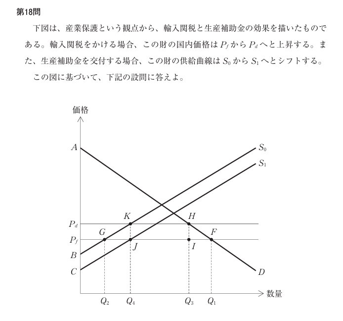 経済学の「社会的余剰」、特に輸入関税と生産補助金がどう影響するのかって、グラフも複雑で悩みますよね。私も「一体どこの面積が何を示しているの?」と混乱し、まんまと過去問の罠にハマってしまいました。